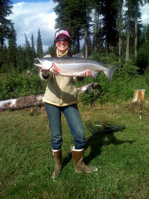 In scheduling the Peak Sockeye Season, we must limit the number of fishermen in order to preserve the quality of the experience and prevent overcrowding as occurs on some public areas of the river. Accordingly, we only rent 2 cabins (the Eagles Retreat and the Bear's Den) during the peak of the salmon run. Our shore fishing for Red salmon (sockeyes) is from a natural waterfront environment and is perhaps the best sockeye fishing on the river. Silver salmon fishing usually runs from mid-August through September. Please call us for additional details, availability and rate information.